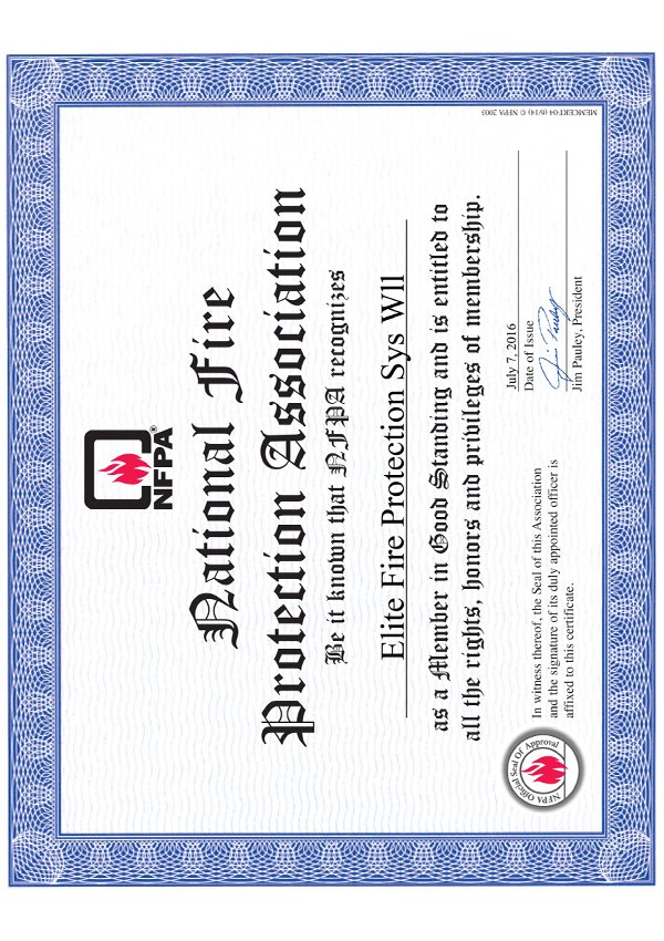 We are Certified by The National Fire Protection Association (NFPA) – United States trade association.