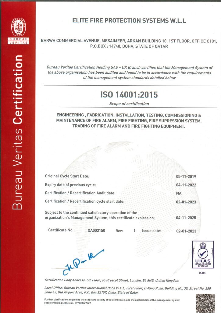 Elite is certified as an ISO 14001:2015 compliant for a Environmental Management System organization.