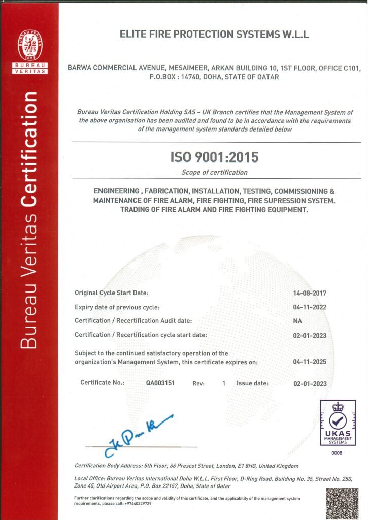 Elite is certified as an ISO 9001:2015 compliant for a Quality Management System organization.